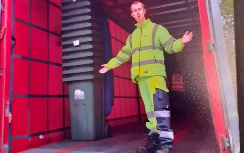 Bryan Rowe seen working at his internship at a waste management company.